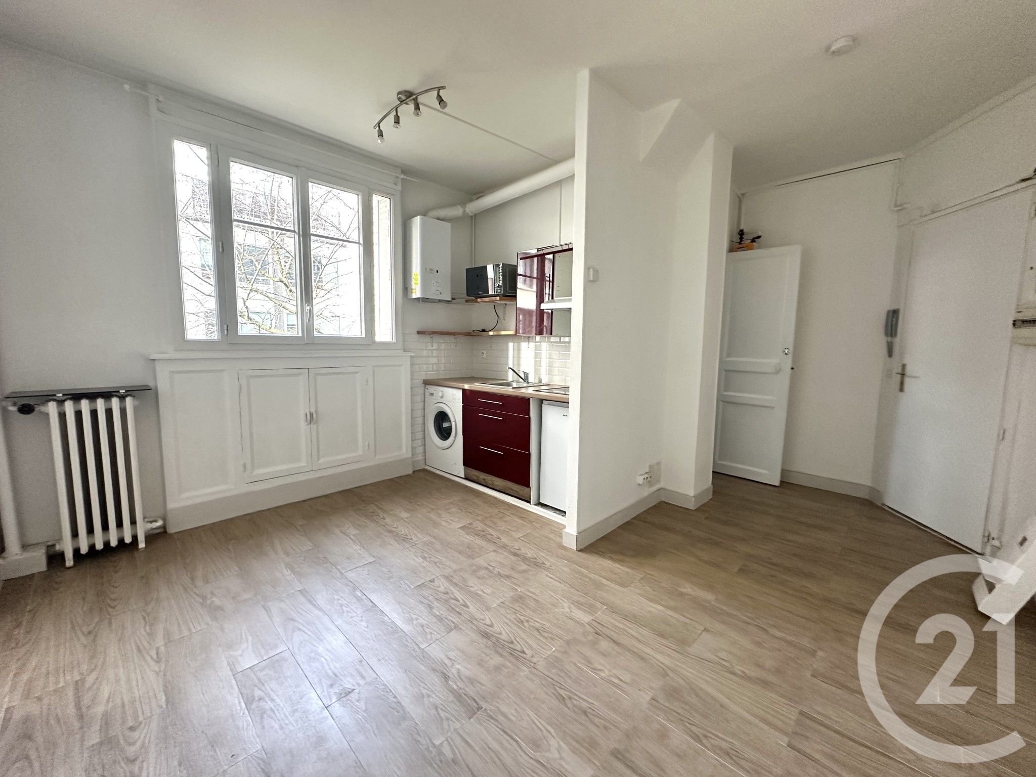Bel appartement de 33.64 m2 Loi Carrez situé au 1er étage avec ascenseur d'un bel immeuble ancien comprenant une entrée, un séjour lumineux exposé Sud-Ouest avec vue dégagée et arborée, une cuisine ouverte aménagée, équipée, une chambre avec cheminée, une salle de douche avec w-c. Bon état. Eau chaude et chauffage individuels non compris: chaudière à gaz.