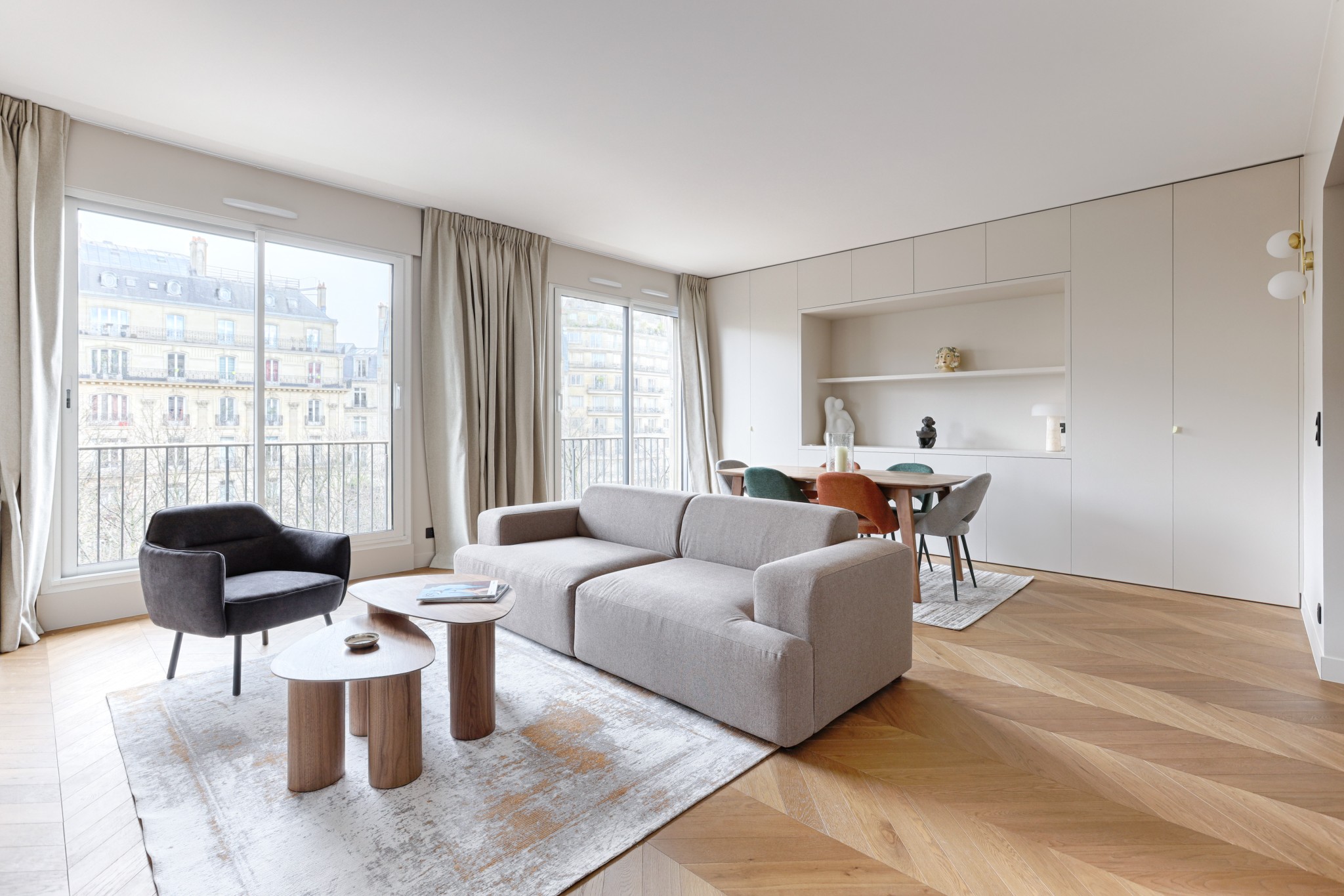 Superbe appartement traversant entièrement rénové par architecte avec des prestations haut de gamme et des finitions raffinées.